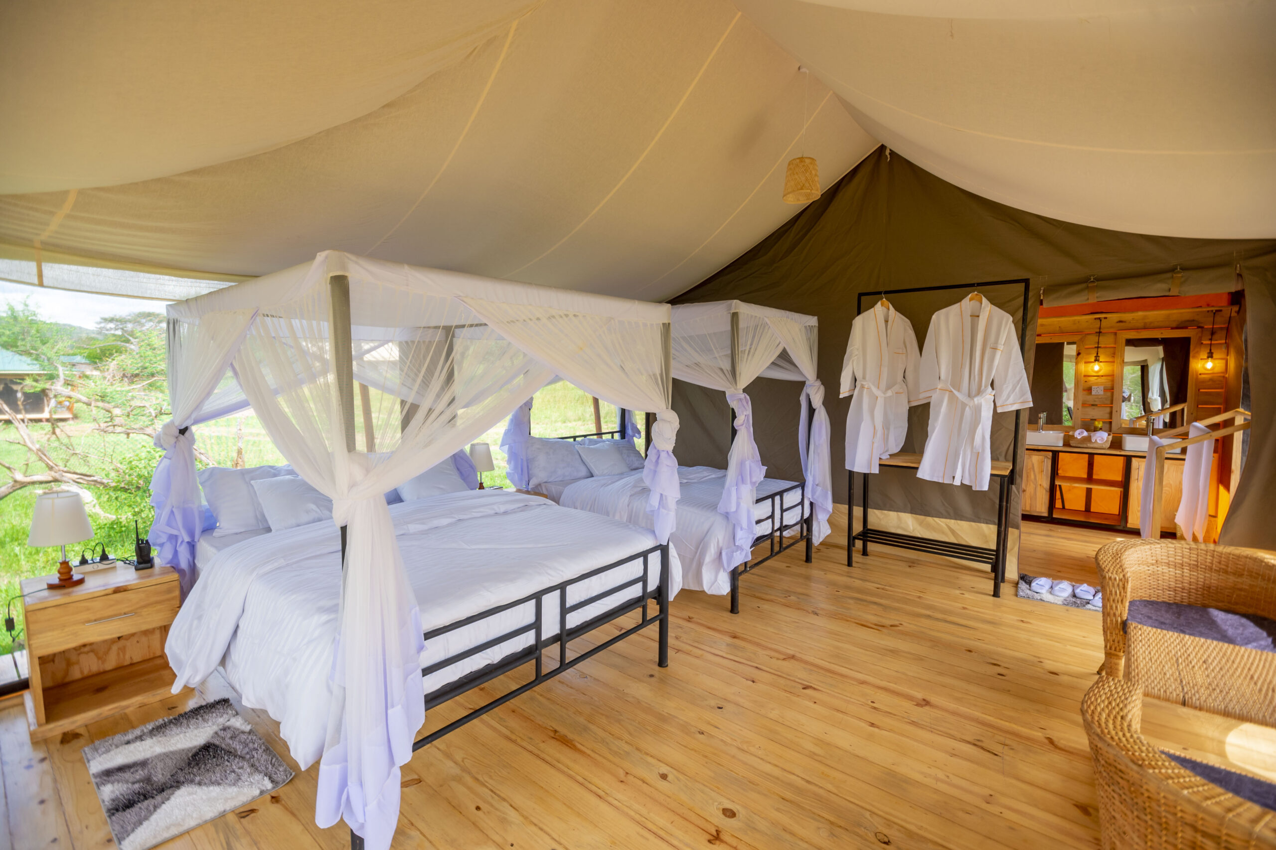 Luxury tents with breathtaking views, combining comfort with nature.